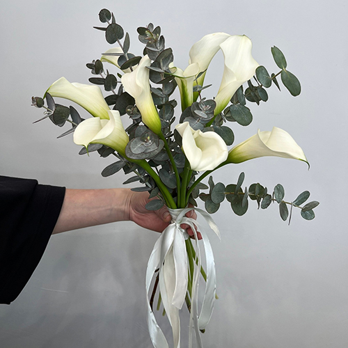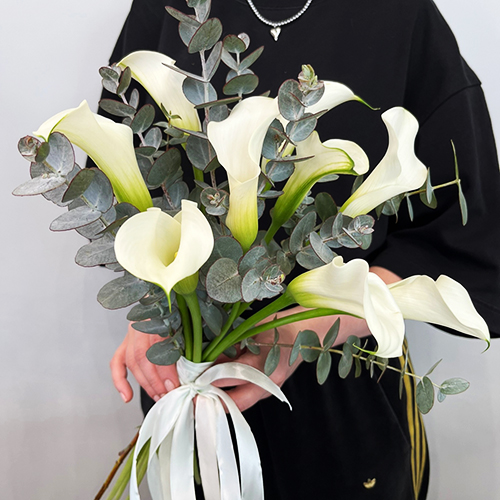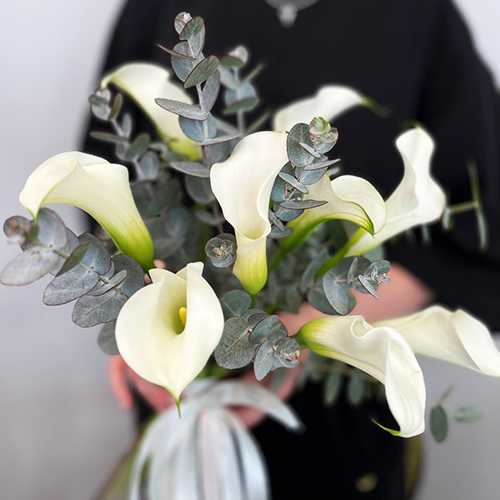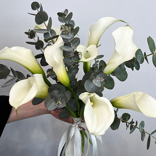 Букет белых калл с эвкалиптом